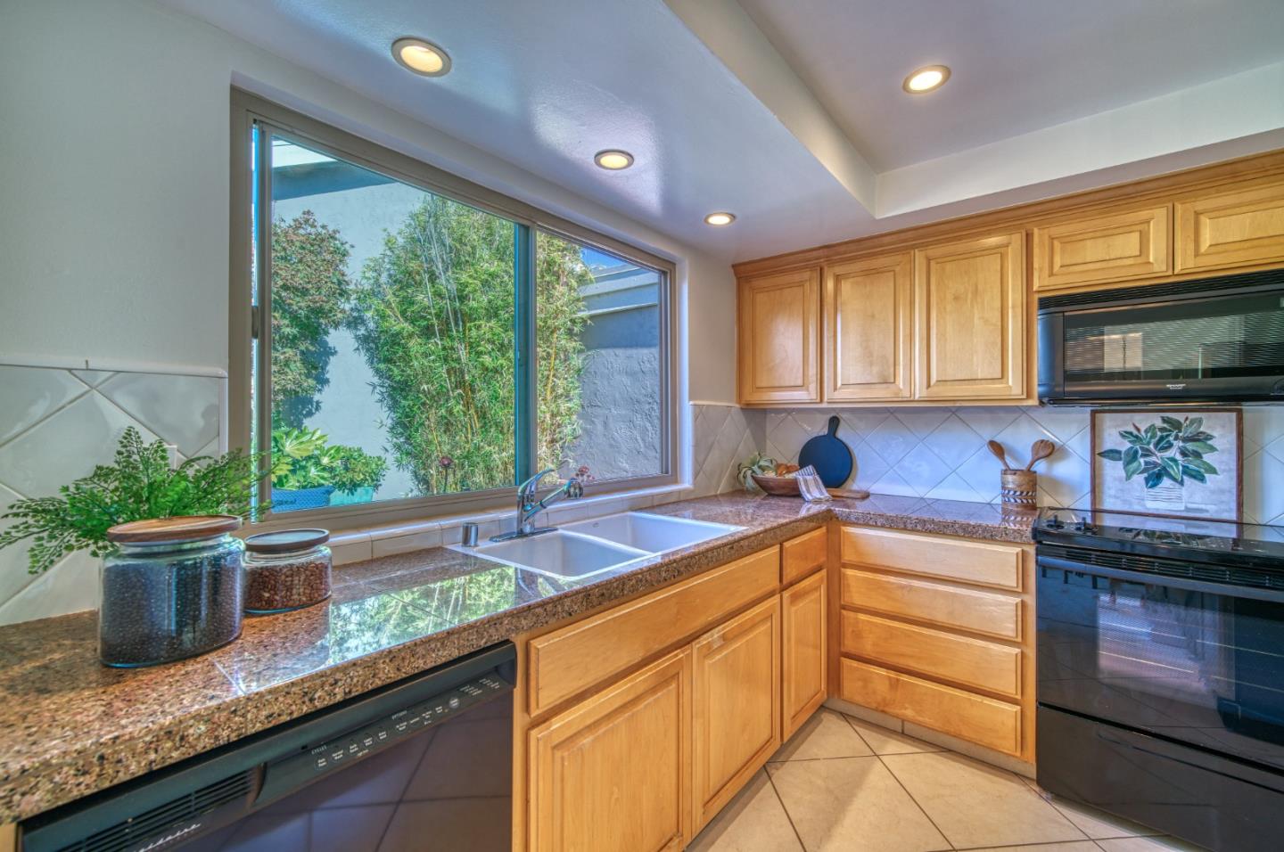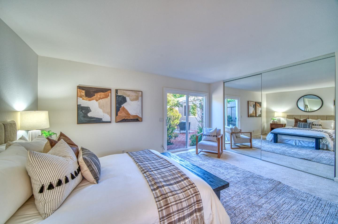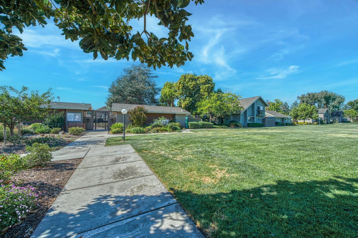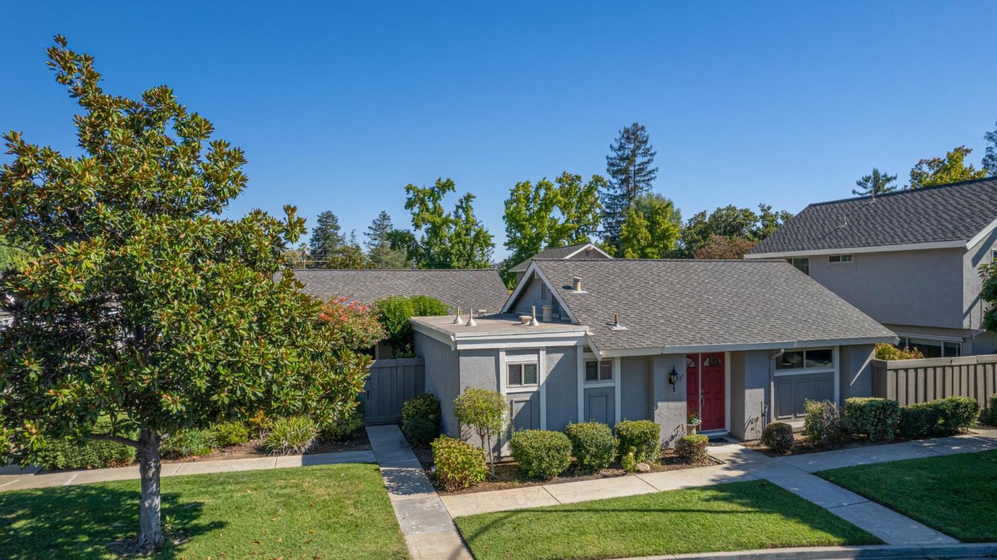 Nestled within the picturesque Los Gatos Village community, 127 Escobar Avenue offers a serene escape where comfort and style converge. Discover a thoughtfully designed interior that blends elegance with cozy charm. The spacious living area, adorned with soaring ceilings and oversized windows, is bathed in natural light, creating a welcoming atmosphere. The open-concept layout seamlessly integrates the dining area, making it perfect for entertaining guests or enjoying intimate meals. The updated kitchen showcases granite tile countertops, sleek wood cabinetry, and stunning views of the brick patio and lush landscaping. The spacious primary bedroom, complete with a wall-to-wall closet and an updated en-suite bathroom, creates a private retreat. The additional bedroom and updated full bathroom provide ample space for guests or home office needs. Step outside to your private patio, where lush vegetation creates a tranquil oasis for dining or relaxing in the sun. The community area features fields of grass adorned with mature plants and majestic trees. Feel like a dip in the pool? Grab your swimsuit and head across the street to enjoy a refreshing swim or just relax in the sun!
