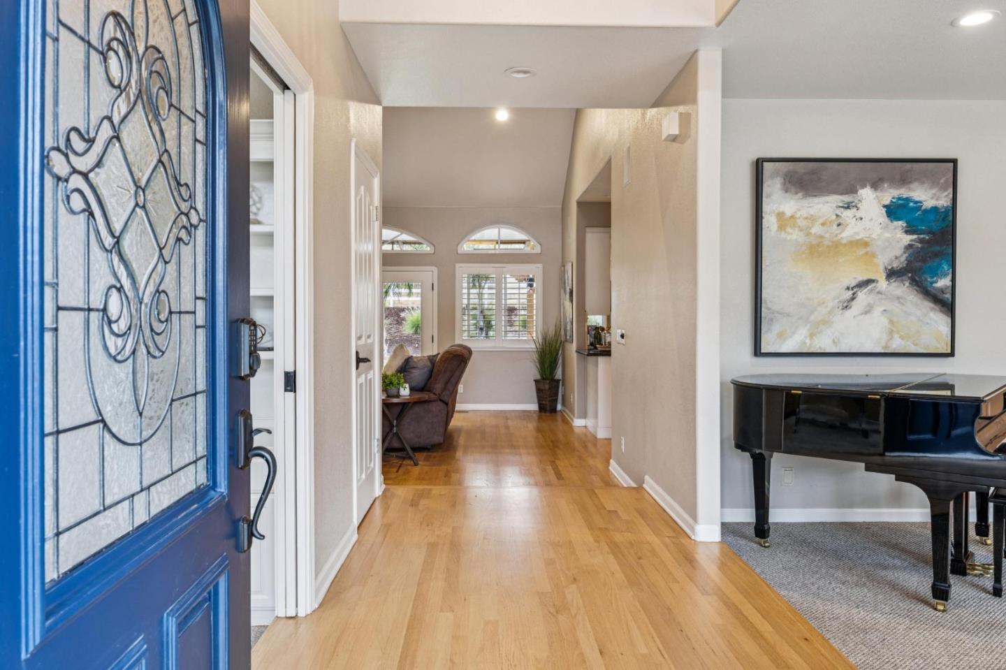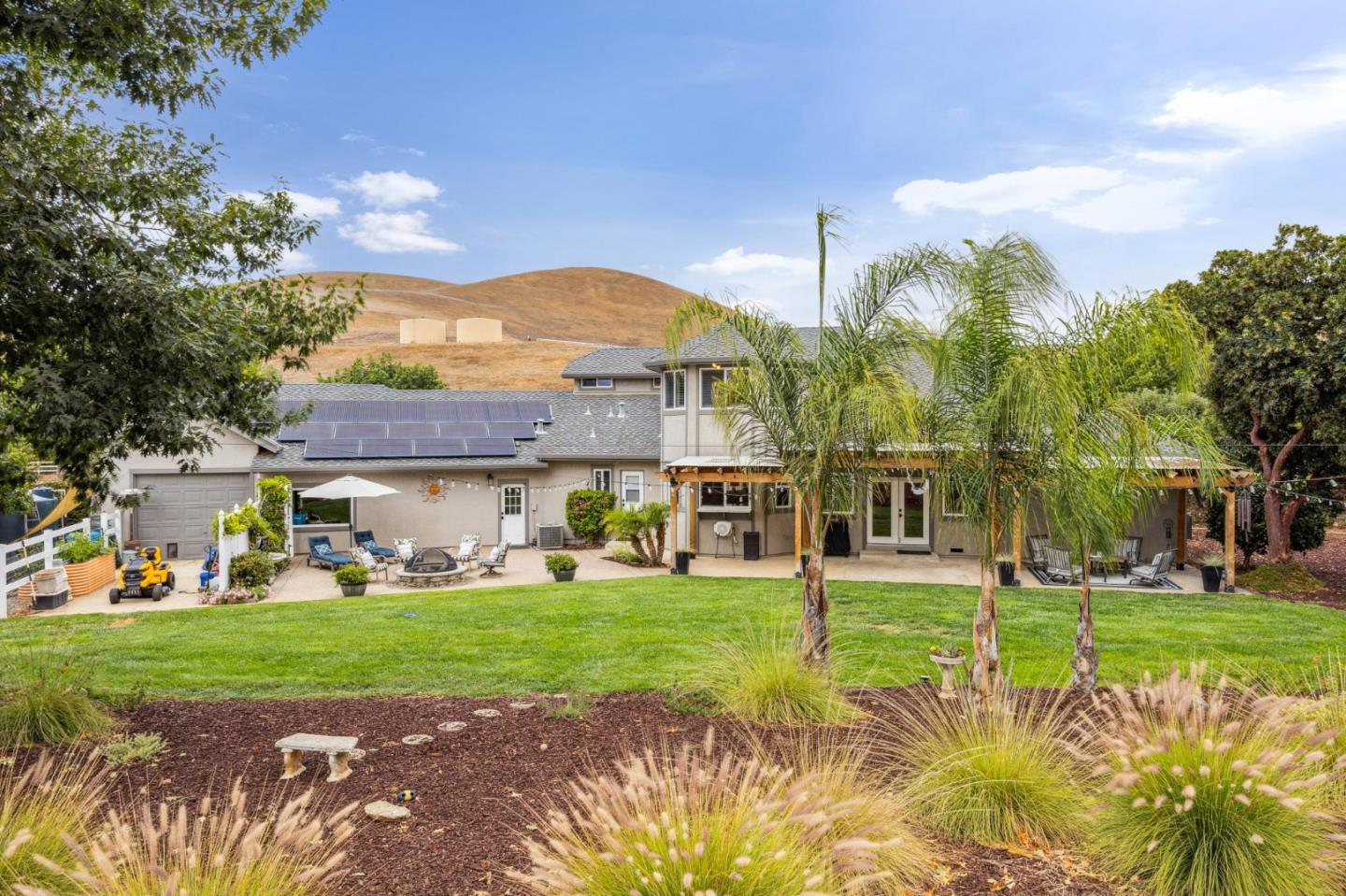 Nestled into the emerald foothills of the Diablo Mountain Range, this gated Stonegate retreat in Tres Pinos delivers an exceptional blend of privacy, space, and sophistication just 8 miles south of Hollister. Set on 3 fully fenced acres suited for horses or livestock, the 5-bedroom, 3-bath, 3,200+- sq ft custom home was thoughtfully remodeled in 2020 with solar, battery backup, LED lighting, and plantation shutters throughout. Sun-filled interiors showcase soaring ceilings, expansive windows, and multiple fireplaces, including a spa-like primary suite with a see-through fireplace and hydrotherapy tub. Outdoor living is equally impressive with a 40-foot pergola, firepit, water feature, and a park-like backyard with mature fruit trees, all within a beautifully maintained estate community offering scenic streets and recreational courts.